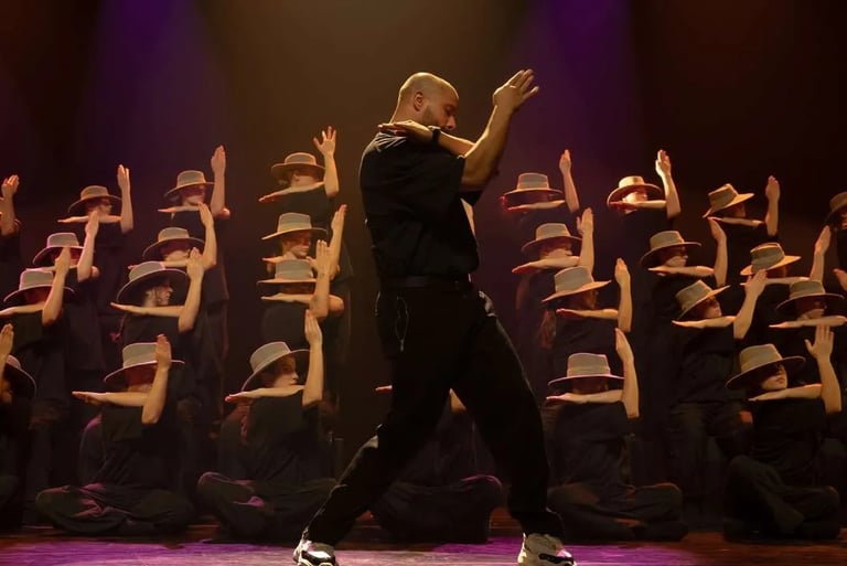 Murmuration transforms movement into art.Dozens of bodies merge into a single rhythm, creating mesmerizing forms that are born and disappear before your eyes.Inspired by natural dynamics and human precision, the spectacle has been presented and applauded on international stages.